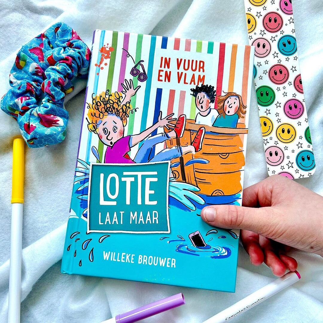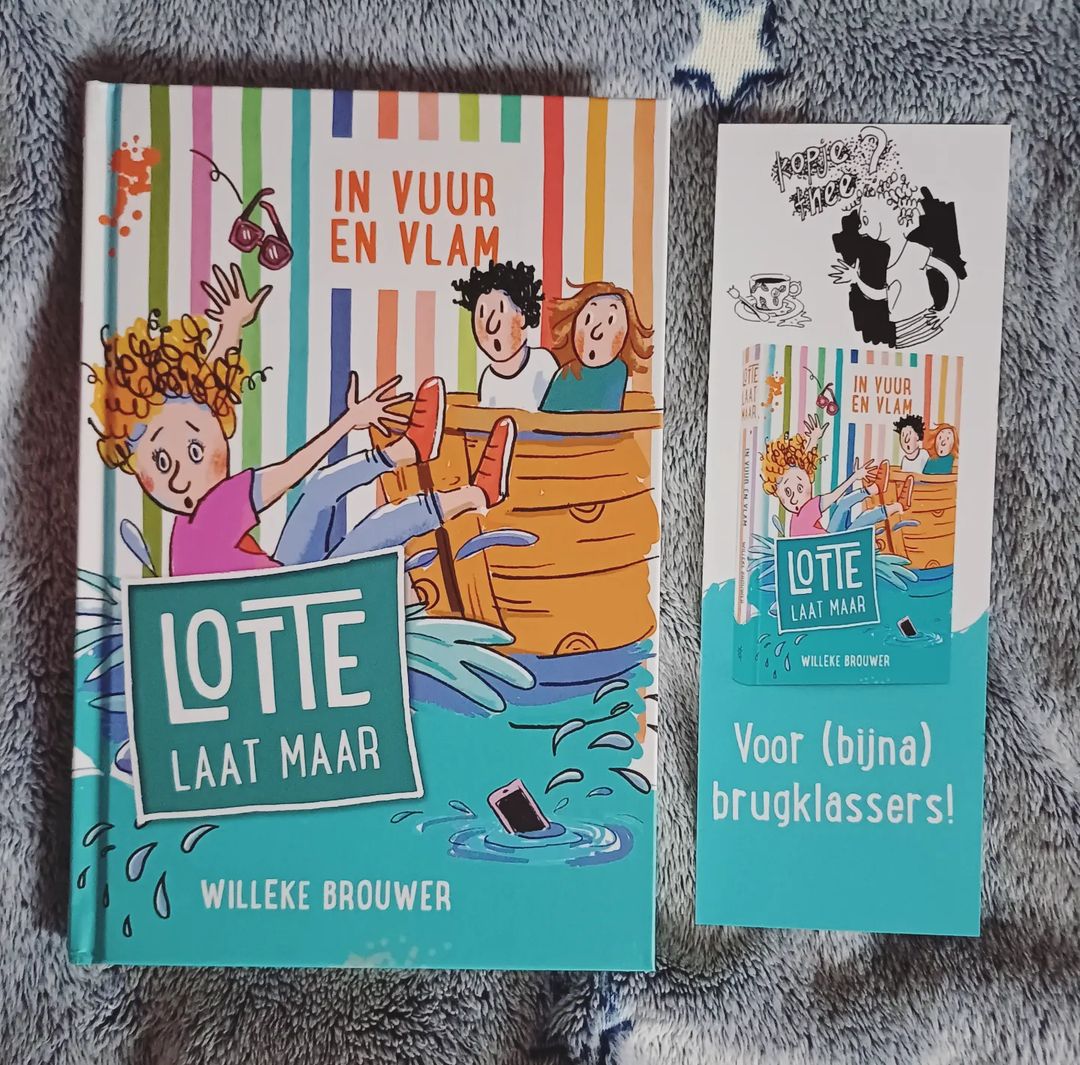 In vuur en vlam van Willeke Brouwer is het vierde en laatste deel uit de serie ‘Lotte laat maar’ voor kinderen vanaf 10 jaar. Lotte vindt het leven in de brugklas maar ingewikkeld. Is ze eindelijk een beetje gewend aan al dat huiswerk, gaan ze op excursie naar de Weerribben. Ze mogen fijn gaan turven hoeveel donkere waterjuffers ze zien, en waar de groenknolorchis groeit. Boeie! Dan is er nog Mark, maar wat spookt hij ineens uit met Vanessa? Het ergste van alles is het nieuwe liedje van Daan. Iets met ‘tsjoetsjoewa, tsjoetsjoewa, tsjoetsjoewaawaawaa…’ Dat leert haar broertje op het kinderdagverblijf. Lotte kan die juf wel schieten. Gelukkig gaat ze gezellig BBQ’en met de toneelgroep. Hoewel, gezellig…?