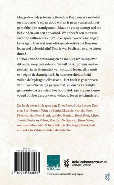 In ’12 artikelen over voltooid leven’ onder redactie van Henk Post en Bert van Veluw worden twaalf vragen besproken rond het levenseinde, o.a.: Wat houdt de term ’voltooid leven’ eigenlijk in? Wat kom je tegen als pastor wanneer mensen geconfronteerd worden met vragen over hun al of niet voltooide leven?
