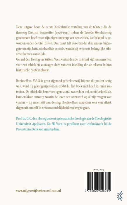 Dietrich Bonhoeffer (1906-1945) werkte tijdens de Tweede Wereldoorlog aan zijn eigen ontwerp van een ethiek. Het project bleef onvoltooid, doordat hij gevangengenomen werd. De ethiek die hem voor ogen stond, was echter ook nooit bedoeld als kant-en-klaar ontwerp waarin de lezer een antwoord op al zijn vragen zou vinden – hij moet zélf aan de slag. Bonhoeffers aanzetten voor een ethiek dagen de lezer daartoe uit. De teksten zijn vertaald en ingeleid door Gerard den Hertog en Wilken Veen.