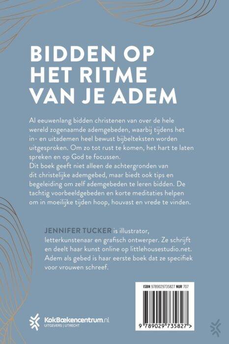 Adem als gebed van Jennifer Tucker is een praktisch boek dat lezers helpt om hun gebeden (opnieuw) vorm te geven op basis van ademhaling. Al eeuwenlang bidden christenen van over de hele wereld zogenaamde ademgebeden, waarbij tijdens het in- en uitademen heel bewust bijbelteksten worden uitgesproken. Om zo tot rust te komen, het hart te laten spreken en op God te focussen. Dit boek geeft niet alleen de achtergronden van dit christelijke ademgebed, maar geeft vooral ook tips en begeleiding om zelf ademgebeden te leren bidden. De tachtig voorbeeldgebeden en korte meditaties helpen om in moeilijke tijden hoop, houvast en vrede te vinden.