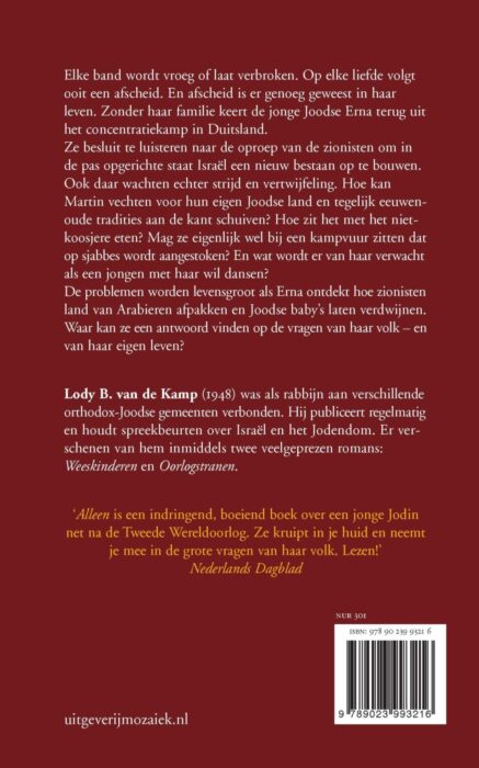 Ook daar wachten echter strijd en vertwijfeling. Hoe kan Martin vechten voor hun eigen Joodse land en tegelijk eeuwenoude tradities aan de kant schuiven? De problemen worden levensgroot als Erna ontdekt hoe Zionisten land van Arabieren afpakken en Joodse baby' s laten verdwijnen. Waar kan ze een antwoord vinden op de vragen van haar volk en van haar eigen leven?