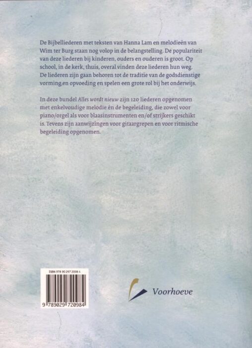In deze bundel Alles wordt nieuw zijn 120 liederen opgenomen met enkelvoudige melodie én de begeleiding, die zowel voor piano/orgel als voor blaasinstrumenten en/of strijkers geschikt is. Tevens zijn aanwijzingen voor gitaargrepen en voor ritmische begeleiding opgenomen.