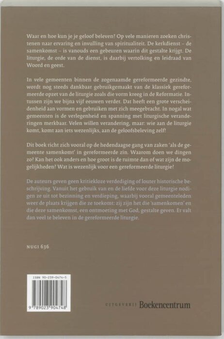 Waar en hoe kun je je geloof beleven? Op vele manieren zoeken christenen naar ervaring en invulling van spiritualiteit. de kerkdienst - de samenkomst - is vanouds een gebeuren waarin dit gestalte krijgt. De liturgie, de orde van de dienst, is daarbij vertolking en leidraad van Woord en geest. In vele gemeenten binnen de zogenaamde gereformeerde gezindte, wordt nog steeds dankbaar gebruikgemaakt van de klassiek gereformeerde opzet van de liturgie zoals die vorm kreeg in de Reformatie.