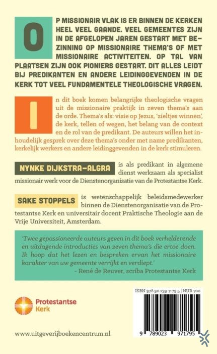 In dit boek komen belangrijke theologische vragen uit de missionaire praktijk in zeven thema’s aan de orde. Thema’s als: visie op Jezus, ‘zieltjes winnen’, de kerk, tellen of wegen, het belang van de context en de rol van de predikant. De auteurs willen het inhoudelijk gesprek over deze thema’s onder met name predikanten, kerkelijk werkers en andere leidinggevenden in de kerk stimuleren.