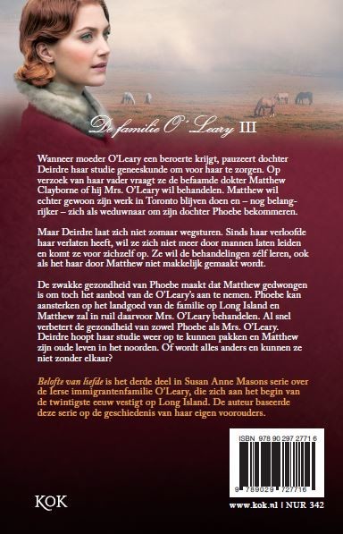'Belofte van liefde' is het derde deel in een serie, maar kan prima los gelezen worden. Benieuwd naar de eerdere belevenissen van de familie O'Leary? Lees dan ook 'Boerendochters' en 'Nobel hart'.