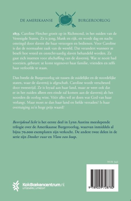 Dan breekt de burgeroorlog uit tussen de zuidelijke en de noordelijke staten, waar de slavernij al is afgeschaft. Caroline wordt verscheurd door tweestrijd. Ze is loyaal aan haar land, maar ze weet ook dat er in het zuiden alleen een einde zal komen aan de slavernij als het noorden de oorlog wint. Voor alles wil ze doen wat God van haar verlangt. Maar moet ze dan haar land en liefde verraden? Is haar overtuiging zo'n hoge prijs waard?