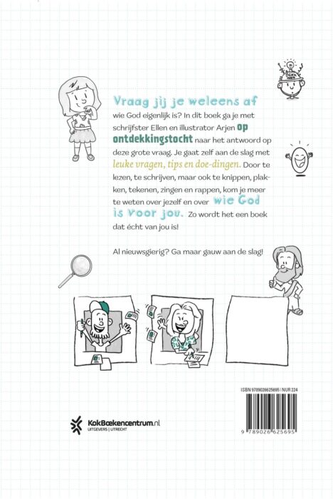 In dit doeboek ga je op een speurtocht door de Bijbel en leer je de verschillende kanten van God kennen. Je hoeft niet stil te zitten, maar je gaat zelf aan de slag. Je gaat ontdekken wat God zegt over zichzelf en wat mensen uit de Bijbel vertellen over God. En je gaat nadenken over wie God is of kan zijn voor jou. Van dit invulboek kun je echt je eigen boek maken.