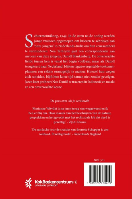 In Boven de robijnen van Marianne Witvliet schrijft Noa Terheyde in 1949 met tegenzin een brief naar een onbekende soldaat in Nederlands-Indië. Jonge vrouwen worden opgeroepen te schrijven aan ‘onze jongens’, om hun eenzaamheid te verminderen en dat vindt vooral Noa’s moeder een goed idee. Maar onze jongen Daniël Blankenberg blijkt veel interessanter dan Noa had vermoed.