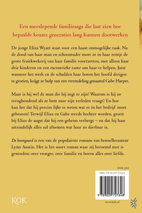 'De boomgaard' is het soort roman waar Lynn Austin beroemd mee is geworden: een ontroerend verhaal over familie en geheimen die zich niet laten wegdrukken.