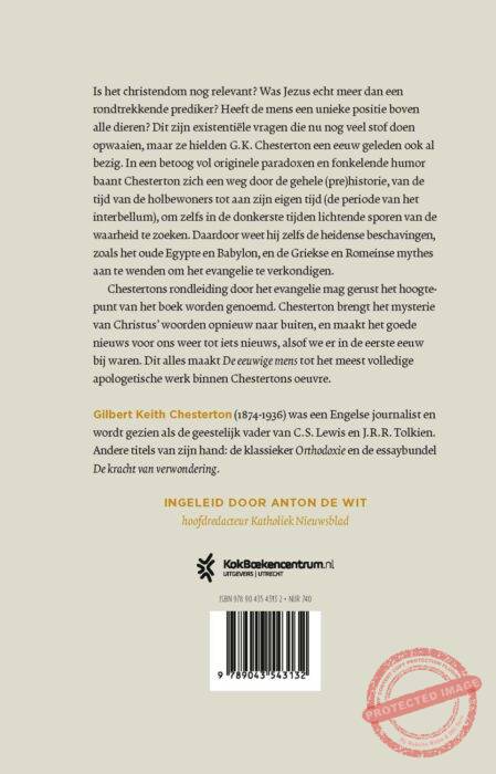 In ‘De eeuwige mens’ laat de Engelse journalist en essayist G.K. Chesterton zien dat het christendom niet slechts een van de vele mythes is, maar een verhaal dat alle mythes overstijgt. Er is geen enkele andere religie waarin de Schepper zelf mens werd om zijn schepping te redden. Met fonkelende humor, meeslepende zinnen en diepe inzichten ontvouwt Chesterton een werk dat even tijdloos en uitdagend is, met als resultaat een ongeëvenaard betoverende geschiedenis van de mens, en de menswording van God.