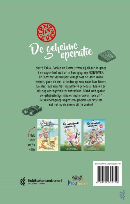 Marit, Fabio, Carlijn en Esmée vormen al jarenlang een hechte vriendengroep. Ze zitten bij elkaar in groep 8 en appen heel wat af in hun appgroep FRNZ4EVER. In dit nieuwe, zelfstandig te lezen deel van de serie gaan de vier vrienden op zoek naar hun talent: wat willen ze later worden? En alsof dat nog niet ingewikkeld genoeg is, hebben ze ook nog een mysterie te ontrafelen. Want wat spoken die geheimzinnige, nieuwe buurvrouwen toch uit? De vriendengroep begint een geheime operatie om dat tot op de bodem uit te zoeken!