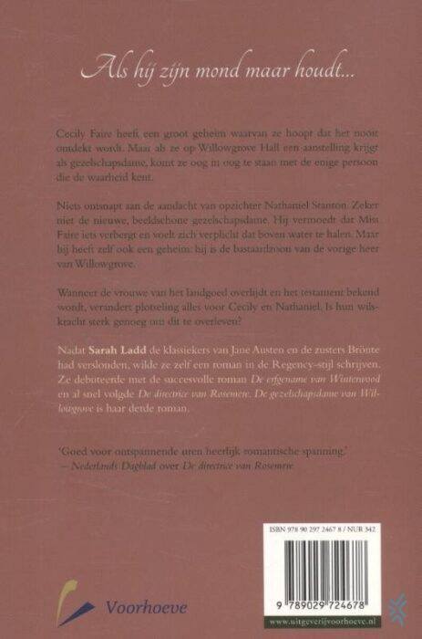 Sarah Ladd schrijft net als Julie Klassen romans die zich afspelen in de Regency-periode in Engeland. Eerder verschenen van haar hand 'De erfgename van Winterwood' en 'De directrice van Rosemere'.