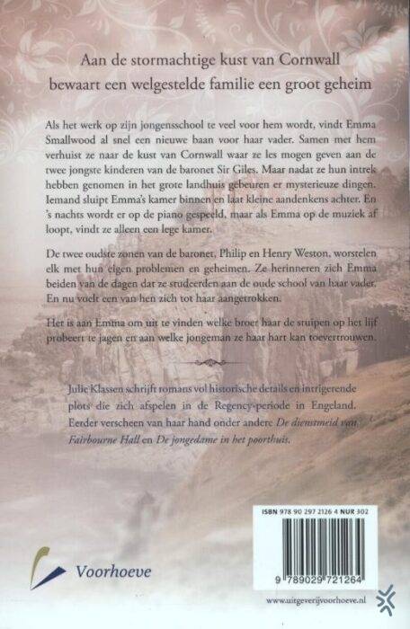 In 'De juffrouw uit Devonshire' verhuist Emma Smallwood met haar vader naar de kust van Cornwall. Ze nemen hun intrek in een groot landhuis bij een barones en haar vier zonen. Samen geven ze les aan de jongste twee, maar al snel blijkt dat iemand het op haar heeft voorzien. Wie scheurde een bladzijde uit haar dagboek? En wie sloop s nachts haar kamer binnen? Het is aan Emma de taak om uit te pluizen wie hiervoor verantwoordelijk is en aan welke zoon ze haar hart kan toevertrouwen.