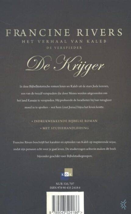 'De krijger' van Francine Rivers is het tweede deel in een serie over mannen in de Bijbel die een belangrijke plaats innamen in de geschiedenis van Israël. Getrouw aan de feiten zoals die in de Bijbel zijn vermeld, brengt de schrijfster mannen van lang geleden tot leven en laat zij ze spreken op een bijdetijdse en inspirerende wijze.