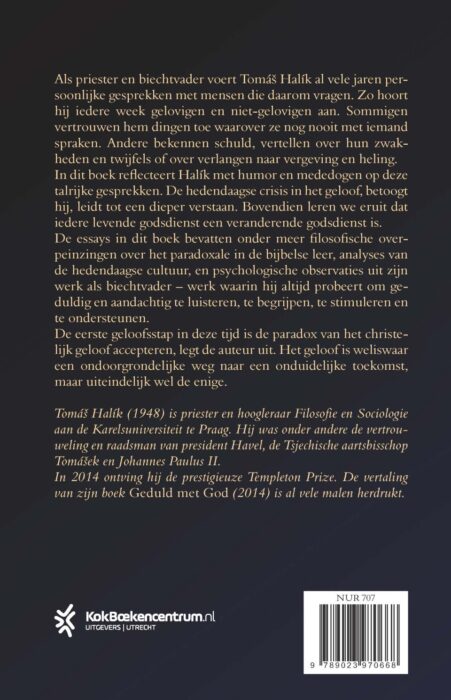 In dit boek reflecteert Halík met humor en mededogen op deze talrijke gesprekken. De hedendaagse crisis in het geloof, betoogt hij, leidt tot een dieper verstaan. Bovendien leren we eruit dat iedere levende godsdienst een veranderende godsdienst is.