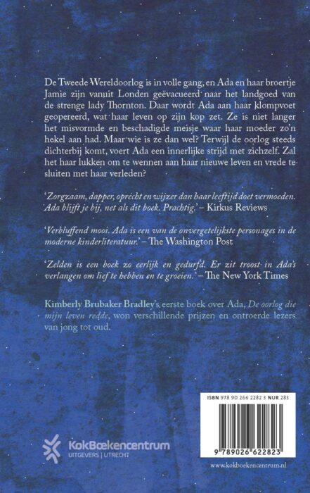 De Tweede Wereldoorlog is in volle gang en Ada en haar broertje Jamie zijn vanuit Londen geëvacueerd naar het landgoed van Lady Thornton. Daar bereikt hun het bericht dat hun moeder is omgekomen bij een bombardement van de munitiefabriek waar ze werkte. Ada zelf moet geopereerd worden aan haar klompvoet. Gelukkig heeft ze Butter nog, de pony waar ze met veel plezier op rijdt. Een ontroerend oorlogsverhaal over hoop en strijd.