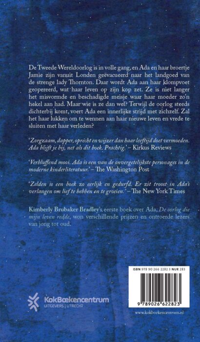 De Tweede Wereldoorlog is in volle gang en Ada en haar broertje Jamie zijn vanuit Londen geëvacueerd naar het landgoed van Lady Thornton. Daar bereikt hun het bericht dat hun moeder is omgekomen bij een bombardement van de munitiefabriek waar ze werkte. Ada zelf moet geopereerd worden aan haar klompvoet. Gelukkig heeft ze Butter nog, de pony waar ze met veel plezier op rijdt. Een ontroerend oorlogsverhaal over hoop en strijd.