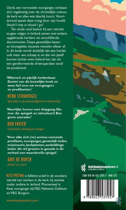 David, een vermoeide voorganger, verbaast zich regelmatig over de christelijke cultuur, de kerk en alles wat daarbij hoort. Voortdurend speelt de volgende vraag door zijn hoofd: ‘Should I stay or should I go?’ Ten einde raad besluit hij een retraite te gaan volgen in Ierland, samen met andere opgebrande herders uit verschillende denominaties. Diepe geestelijke lessen en knotsgekke situaties wisselen elkaar af. In dit boek wordt duidelijk dat een herder ook maar een schaap is, en dat om jezelf kunnen lachen even helend kan zijn als een gereformeerde drietrapsraket vanaf de preekstoel.