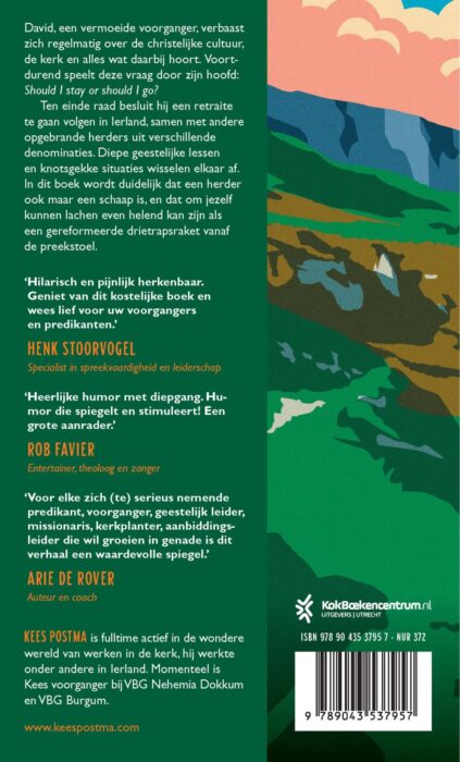 David, een vermoeide voorganger, verbaast zich regelmatig over de christelijke cultuur, de kerk en alles wat daarbij hoort. Voortdurend speelt de volgende vraag door zijn hoofd: ‘Should I stay or should I go?’ Ten einde raad besluit hij een retraite te gaan volgen in Ierland, samen met andere opgebrande herders uit verschillende denominaties. Diepe geestelijke lessen en knotsgekke situaties wisselen elkaar af. In dit boek wordt duidelijk dat een herder ook maar een schaap is, en dat om jezelf kunnen lachen even helend kan zijn als een gereformeerde drietrapsraket vanaf de preekstoel.