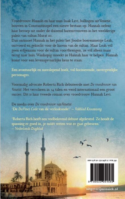 Vroedvrouw Hannah en haar man Isaak Levi, ballingen uit Venetië, bouwen in Constantinopel een nieuw bestaan op. Isaak begint een eigen zaak in de zijdehandel; Hannah, de beste vroedvrouw van heel Constantinopel, oefent haar beroep uit onder de duizend haremvrouwen in het weelderige paleis van Sultan Murat III. Op een avond wordt Hannah onverwacht in het paleis ontboden, en ontmoet ze Leah, een arm Joods boerenmeisje, ontvoerd en gekocht voor de harem van de Sultan. De Sultan wil dat ze een erfgenaam voortbrengt, maar het meisje wil alleen maar terug naar huis, naar het leven dat ze altijd heeft gekend. Ze smeekt Hannah haar te helpen. Maar wíl Hannah dat? Zal ze haar leven en haar baan in de waagschaal stellen om dit meisje te redden, of hecht ze meer waarde aan de hoogachting van de Sultan? Een avontuurlijk en meeslepend boek, vol fascinerende, onvergetelijke personages. Deze roman zal de fans van De Vroedvrouw uit Venetië zeker bevallen en Roberta's reputatie als een van de meeste geliefde auteurs van historische romans verder versterken.