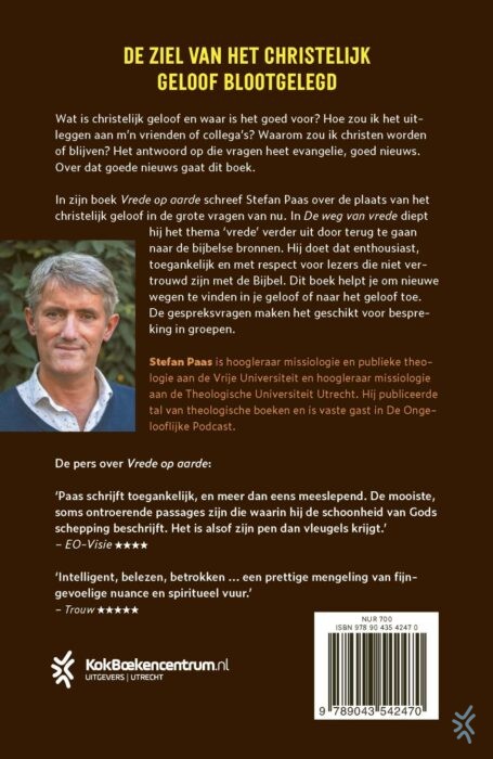 In ‘De weg van vrede’ wil theoloog Stefan Paas de ziel van het christelijk geloof blootleggen vanuit de Bijbel. Wat is christelijk geloof en waar is het goed voor? Hoe zou ik het uitleggen aan m’n vrienden of collega’s? Waarom zou ik christen worden of blijven? Wat houdt die bonte verscheidenheid bij elkaar die we christendom noemen? Het antwoord op die vragen heet evangelie, goed nieuws. Over dat goede nieuws gaat dit boek.