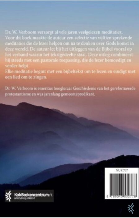 Die dag zal zeker komen van dr. W. Verboom is een pastorale meditatiebundel over de wederkomst. Dr. Wim Verboom verzorgt al vele jaren veelgelezen meditaties. Voor dit boek maakte de auteur een selectie van vijftien sprekende meditaties die de lezer helpen om na te denken over Gods komst in deze wereld. De auteur let bij het uitleggen van de Bijbel vooral op het verband waarin het tekstgedeelte staat. Deze uitleg combineert hij steeds met een pastorale toepassing, die de lezer bemoedigt en verder helpt. Elke meditatie eindigt met een Bijbelgedeelte en een lied.
