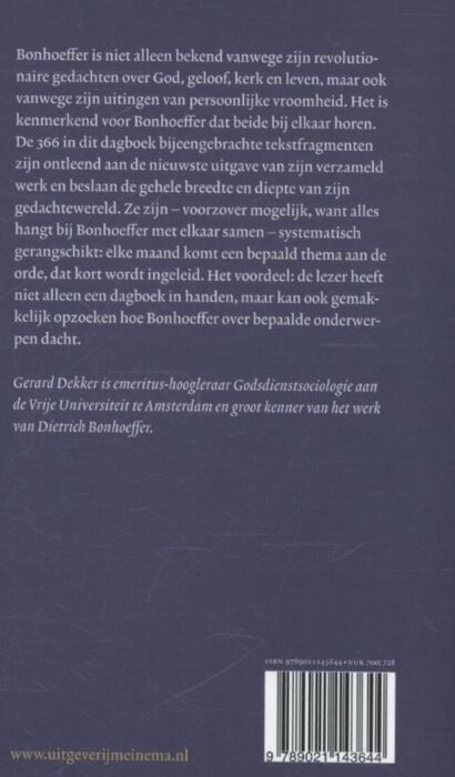 Nu verzameld in een dagboek: 366 tekstfragmenten van Dietrich Bonhoeffer die de gehele breedte en diepte van zijn gedachtewereld beslaan.