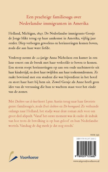 Van Lynn Austins historische romans zijn in Nederland inmiddels zo’n 400.000 exemplaren verkocht. Ze schrijft het liefste verhalen over meerdere generaties vrouwen. Eerder schreef ze in dit genre onder andere ‘Eva’s dochters’ en ‘De boomgaard’.