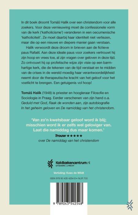In ‘Dromen van een nieuwe morgen’ ontvouwt de Tsjechische priester en hoogleraar Tomáš Halík zijn visie op een barmhartige kerk, die de tekenen van de tijd verstaat. Zo kan ze te midden van de wereldcrises moedig haar verantwoordelijkheid nemen door de therapeutische kracht van het geloof voor het voetlicht te brengen. Voor deze vernieuwing moet de enge confessionele vorm van de kerk (katholicisme) veranderen in een oecumenische katholiciteit. Ze moet daarbij haar identiteit niet verliezen, maar die op een nieuwe en diepere manier gaan verstaan. In dit vervolg op ‘De namiddag van het christendom’droomt Halík van een christendom voor alle zoekers. Een getuigenis vol hoop!