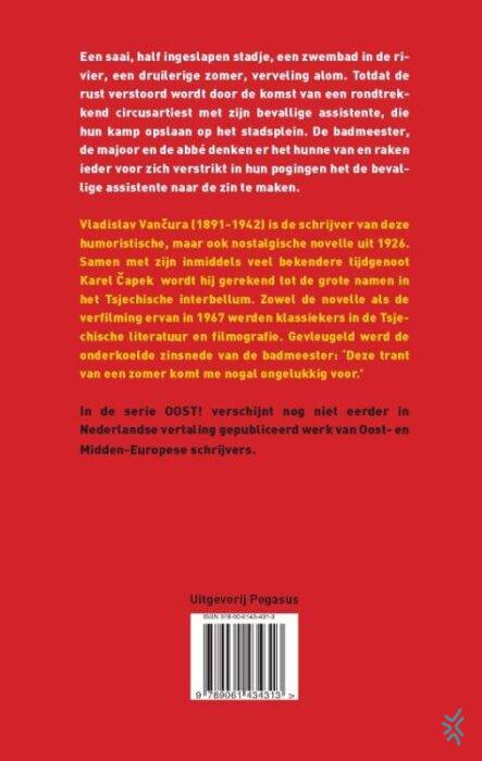Vertaling en inleiding Kees Mercks. Een saai, half ingeslapen stadje, een zwembad in de rivier, een druilerige zomer, verveling alom. Totdat de rust verstoord wordt door de komst van een rondtrekkend circusartiest met zijn bevallige assistente, die hun kamp opslaan op het stadsplein. De badmeester, de majoor en de abbé denken er het hunne van en raken ieder voor zich verstrikt in hun pogingen het de bevallige assistente naar de zin te maken. Vladislav Vančura (1891-1942) is de schrijver van deze humoristische, maar ook nostalgische novelle uit 1926. Samen met zijn inmiddels bekendere tijdgenoot Karel Čapek wordt hij gerekend tot de grote namen in het Tsjechische interbellum. Zowel de novelle als de verfilming ervan in 1967 werden klassiekers in de Tsjechische literatuur en filmografie. Gevleugeld werd de onderkoelde zinsnede van de badmeester: 'Deze trant van een zomer komt me nogal ongelukkig voor.' In de serie OOST! verschijnt nog niet eerder in Nederlandse vertaling gepubliceerd werk van Oost- en Midden-Europese schrijvers.