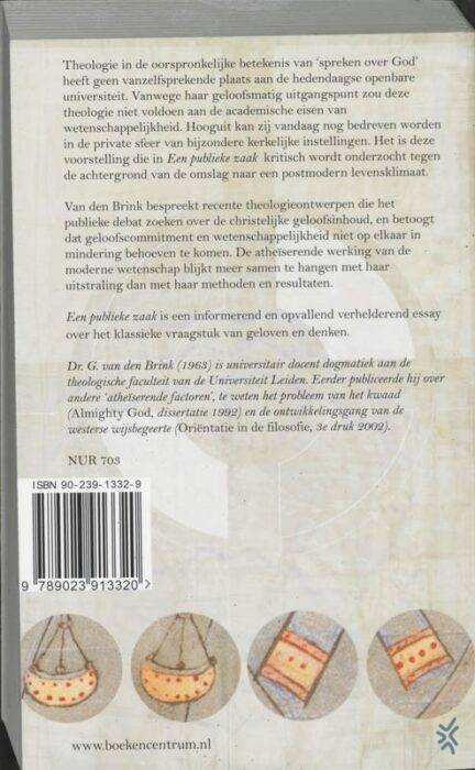Theologie in de oorspronkelijke betekenis van ‘spreken over God’ heeft geen vanzelfsprekende plaats aan de hedendaagse openbare universiteit. Vanwege haar geloofsmatig uitgangspunt zou deze theologie niet voldoen aan de academische eisen van wetenschappelijkheid. Hooguit kan zij vandaag nog bedreven worden in de private sfeer van bijzondere kerkelijke instellingen. Het is deze voorstelling die in Een publieke zaak kritisch wordt onderzocht tegen de achtergrond van de omslag naar een postmodern levensklimaat.