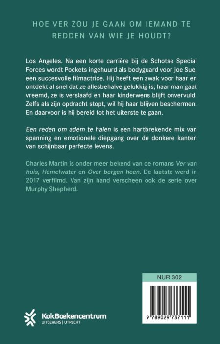 In ‘Een reden om adem te halen’ van Charles Martin wordt Pockets na een korte carrière bij de Schotse Special Forces ingehuurd als bodyguard voor Joe Sue, een succesvolle filmactrice. Hij heeft een zwak voor haar en ontdekt al snel dat ze allesbehalve gelukkig is; haar man gaat vreemd, ze is verslaafd en haar kinderwens blijft onvervuld.