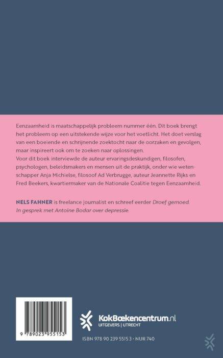 Eenzaam van Nels Fahner brengt het grote maatschappelijke probleem van eenzaamheid voor het voetlicht. Het doet verslag van een boeiende en schrijnende zoektocht naar de oorzaken en gevolgen, maar inspireert ook om te zoeken naar oplossingen. Voor dit boek interviewde de auteur ervaringsdeskundigen, filosofen, psychologen, beleidsmakers en mensen uit de praktijk, onder wie wetenschapper Anja Michielse, filosoof Ad Verbrugge en leken-benedictijn Wil Derkse.