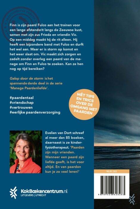 'Galop door de storm' van Evelien van Dort is deel drie in de avontuurlijke paardenserie 'Manege Paardenliefde', voor lezers vanaf 10 jaar.