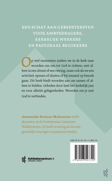 'Gebeden voor de gemeente' van pastor Annemieke Bosman-Mohrmann is een bundel met gebeden voor het kerkelijk jaar en voor allerlei andere gelegenheden. Op veel momenten zoeken we in de kerk naar woorden om ons tot God te richten: niet alleen in een dienst of een viering, maar ook als we een activiteit openen of sluiten of bij iemand op bezoek gaan. Dit boek wil woorden aanbieden om samen of alleen te bidden. Woorden om je met God te verbinden.