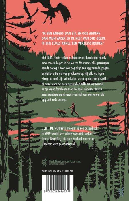 Het is oorlog en boerenzoon Toon begint steeds meer mee te helpen in het verzet. Maar naast alle spanningen van de oorlog is Toon ook nog altijd een opgroeiende jongen en dat levert al genoeg problemen op: hij kijkt op tegen zijn grote neef, zijn vriendschap wordt op de proef gesteld, hij wordt voor het eerst verliefd en zelfs het vertrouwen in zijn eigen familie staat op het spel. Een spannend oorlogsverhaal van de jonge auteur Cliff de Rouw, winnaar van de verhalenwedstrijd rondom het thema ‘Bevrijding’ die in 2020 door KokBoekencentrum werd georganiseerd.