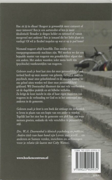 Geloven zoals je bent laat zien dat onze persoonlijkheid ook invloed heeft op onze manier van geloven. Geloof is niet iets psychisch, maar onze geloofsinhoud en de manier waarop we ons geloof uiten worden wel door onze persoonlijkheid gekleurd. Wil Doornenbal illustreert dat met vele voorbeelden uit de dagelijkse praktijk en uit bijbelse verhalen. Aan de hand van concrete beschrijvingen krijgt de lezer inzicht in zijn of haar eigen manieren van reageren in de verhouding tot God en in het samenspel met anderen in de gemeente.
