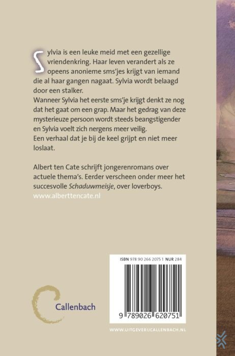 Sylvia is een vlotte meid met een gezellige vriendenkring. Haar leven verandert als ze opeens anonieme sms’jes krijgt van iemand die al haar gangen nagaat. Sylvia wordt belaagd door een stalker. Wanneer Sylvia het eerste sms’je krijgt denkt ze nog dat het gaat om een grap. Maar het gedrag van deze onbekende persoon wordt langzamerhand beangstigender. Wanneer hij haar ’s nachts opzoekt in de vakantiewoning van haar vader en op de ramen bonst, weet ze dat er iets goed mis is. Wie zit er zo wanhopig achter haar aan? Een verhaal dat je in z’n greep houdt tot de laatste bladzijde.