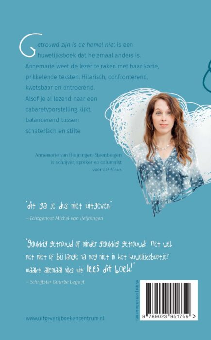 Getrouwd zijn is de hemel niet is een huwelijksboek dat helemaal anders is. Annemarie weet de lezer te raken met haar korte, prikkelende teksten. Hilarisch, confronterend, kwetsbaar en ontroerend. Alsof je al lezend naar een cabaretvoorstelling kijkt, balancerend tussen schaterlach en stilte.