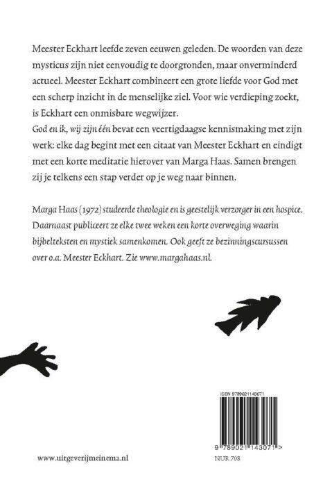 God en ik, wij zijn één bevat een veertigdaagse kennismaking met zijn werk: elke dag begint met een citaat van Meester Eckhart en eindigt met een korte meditatie hierover van Marga Haas. Samen brengen zij je telkens een stap verder op je weg naar binnen.