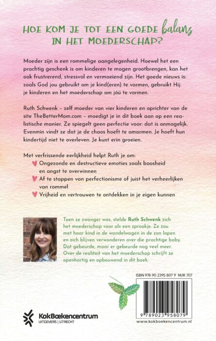 Hoe geweldig het ook is om kinderen te hebben, het kan ook stressvol en vermoeiend zijn. Maar net zoals God ons gebruikt om onze kinderen te vormen, gebruikt hij onze kinderen om óns te vormen. Het down-to-earth moederboek 'Happy mom' van Ruth Schwenk helpt je om met die basis te groeien in je moederschap. Je hoeft het niet perfect te doen, en je hoeft ook niet alles op z’n beloop te laten. Er is een andere weg. Een weg die je samen met God mag bewandelen. Een weg waarop je de moeder wordt die God al die tijd al in jou ziet. Een happy mom.