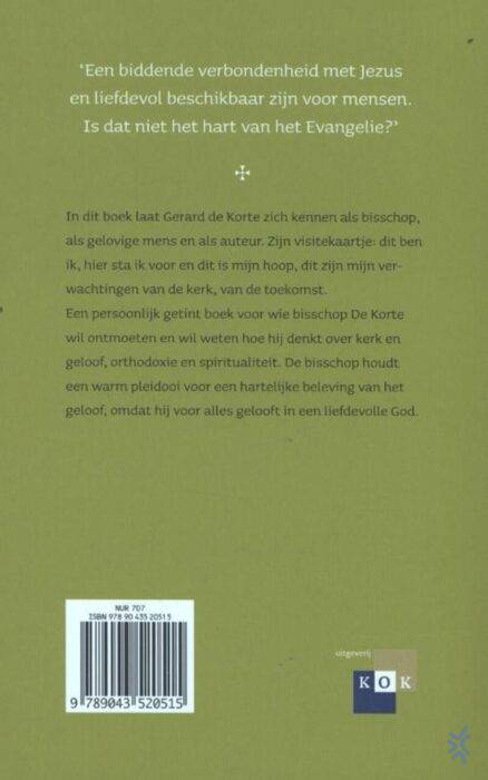 In dit boek laat bisschop De Korte zich kennen als bisschop, als gelovige mens en als auteur. Zijn visitekaartje: dit ben ik, hier sta ik voor en dit is mijn hoop, dit zijn mijn verwachtingen van de kerk, van de toekomst. Een persoonlijk getint boek voor wie de De Korte wil ontmoeten en wil weten hoe hij denkt over kerk en geloof, orthodoxie en spiritualiteit. De bisschop houdt een warm pleidooi voor een hartelijke beleving van het geloof, omdat hij voor alles gelooft in een liefdevolle God.