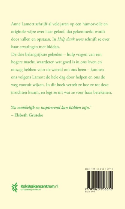 Help dank wow van de Amerikaanse bestsellerauteur Anne Lamott is een origineel boek over het gebed, waarin de drie belangrijkste gebeden – hulp vragen van een hogere macht, waarderen wat goed is in ons leven en ontzag hebben voor de wereld om ons heen – centraal staan. De auteur schrijft al vele jaren op een humorvolle en originele wijze over haar geloof, dat gekenmerkt wordt door vallen en opstaan. In Help dank wow schrijft ze over haar ervaringen met bidden. De drie belangrijkste gebeden kunnen ons volgens Lamott de hele dag door helpen en ons de weg vooruit wijzen. In dit boek vertelt ze hoe ze tot deze inzichten kwam, en legt ze uit wat ze voor haar betekenen en hoe ze haar hebben geholpen.