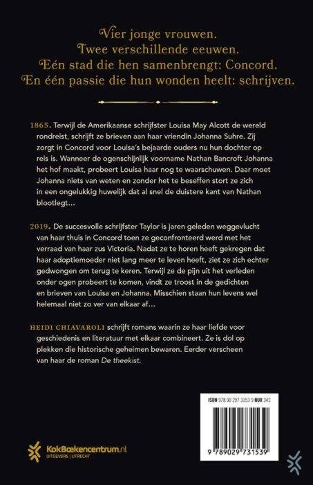 2019. De succesvolle schrijfster Taylor is jaren geleden weggevlucht van haar thuis in Concord toen ze geconfronteerd werd met het verraad van haar zus Victoria. Nadat ze te horen heeft gekregen dat haar adoptiemoeder niet lang meer te leven heeft, ziet ze zich echter gedwongen om terug te keren. Terwijl ze de pijn uit het verleden onder ogen probeert te komen, vindt ze troost in de gedichten en brieven van Louisa en Johanna. Misschien staan hun levens wel helemaal niet zo ver van elkaar af…