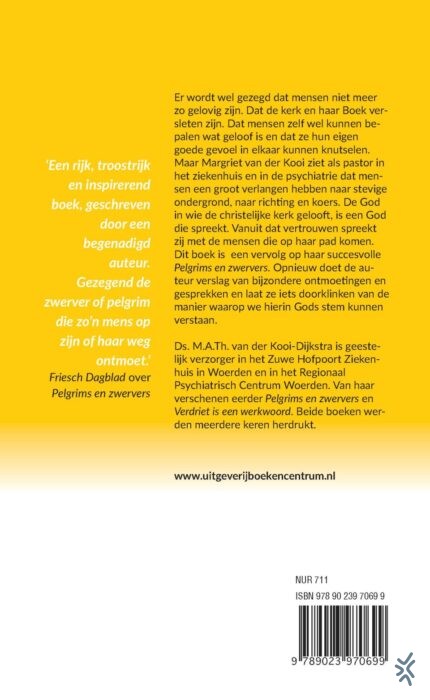 Maar Margriet van der Kooi ziet als pastor in het ziekenhuis en in de psychiatrie dat mensen een groot verlangen hebben naar stevige ondergrond, naar richting en koers. De God in wie de christelijke kerk gelooft, is een God die spreekt. Vanuit dat vertrouwen spreekt zij met de mensen die op haar pad komen.