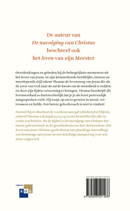 Overdenkingen en gebeden bij de belangrijkste momenten uit het leven van Jezus. In zijn kenmerkende beeldrijke, intense en meeslepende stijl tekent Thomas a Kempis de levensweg van Jezus die als de zoon van God naar de aarde kwam om de mensheid te redden en door zijn lijden verzoening te brengen. Thomas beschrijft dit levensverhaal zo hartstochtelijk dat je je als lezer persoonlijk aangesproken voelt. Thomas roept op om te groeien in moed, vertrouwen en liefde. Een betere geloofscoach is niet te vinden!