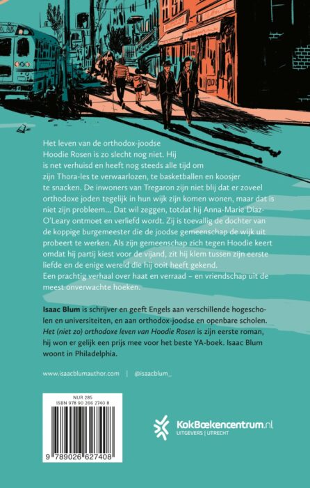 ‘Het (niet zo) orthodoxe leven van Hoodie Rosen’ van Isaac Blum is een boeiende jeugdroman over een orthodox-joodse jongen die in twee werelden leeft, voor lezers van Chaim Potok. Het leven van Hoodie Rosen is zo slecht nog niet. Hij is net verhuisd en heeft genoeg tijd om zijn Thorastudie te ontlopen, te basketballen en koosjere snacks te halen. De inwoners van Tregaron zijn niet blij dat er zoveel orthodoxe joden tegelijk in hun stadje zijn komen wonen, maar dat is niet zijn probleem… Dat wil zeggen, totdat hij Anna-Marie Diaz-O’Leary ontmoet en verliefd wordt. Zij is toevallig de dochter van de koppige burgemeester die Hoodies gemeenschap uit de stad probeert te weren. Terwijl zijn gemeenschap zich tegen hem keert omdat hij partij kiest voor de vijand, zit Hoodie gevangen tussen zijn eerste liefde en de enige wereld die hij ooit heeft gekend. Een prachtig, met vaart en humor geschreven verhaal over haat en verraad – en vriendschap op de meest onverwachte plaatsen.
