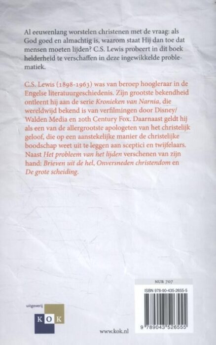 In 'Het probleem van het lijden' stelt C.S. Lewis de vraag: 'Als God goed en almachtig is, waarom staat Hij dan toe dat mensen moeten lijden?' In dit boek, dat leest als een spirituele pelgrimage, geeft hij een helder en tegelijk vertroostend uitzicht over de grens van pijn en verdriet. Er is geen schrijver die zo helder kan uitleggen wat het betekent om christen te zijn als C.S. Lewis. Hij blijft niet steken in een abstracte theologische uiteenzetting, maar maakt het Bijbelse verhaal op een persoonlijke manier tot een prachtig geschenk.