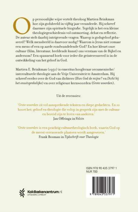 In zijn nieuwe boek Hoe mijn God veranderde vertelt theoloog Martien Brinkman hoe zijn godsbeeld in vijftig jaar veranderde. Hij schreef daarmee zijn spirituele biografie. Tegelijk is het een kleine theologiegeschiedenis vol ontmoeting, debat en reflectie. De auteur stelt daarbij intrigerende vragen: Waarop is godsgeloof gebaseerd? Welk mensbeeld is daarvoor nodig? Waarom is Jezus niet zomaar een mens of een op aarde rondwandelende God? En hoe kleurt onze cultuur (film, literatuur, beeldende kunst) ons verstaan van de Bijbel en andersom? Een spannend boek voor ieder die geïnteresseerd is in de ontwikkeling van godsgeloof.
