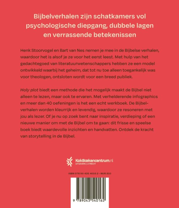 Henk Stoorvogel en Bart van Nes nemen je mee in de Bijbelse verhalen, waardoor het is alsof je ze voor het eerst leest. Met hulp van het gedachtegoed van literatuurwetenschappers hebben ze een model ontwikkeld waarbij het geheim, dat tot nu toe alleen toegankelijk was voor theologen, ontsloten wordt voor een breed publiek. Holy plot biedt een methode die het mogelijk maakt de Bijbel niet alleen te lezen, maar ook te ervaren. Met verhelderende infographics en meer dan 40 oefeningen is het een echt werkboek. De Bijbelverhalen worden kleurrijk en levendig, waardoor ze resoneren met jou als lezer. Of je nu op zoek bent naar inspiratie, verdieping of een nieuwe manier om met de Bijbel om te gaan: dit frisse en speelse boek biedt waardevolle inzichten en handvatten. Ontdek de kracht van storytelling in de Bijbel.